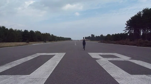 At the disused airport, thinking I was alone, I pretended to be an airplane. Half way down the runway a man emerged from the woods. Embarrassed, I turned and ran back.
